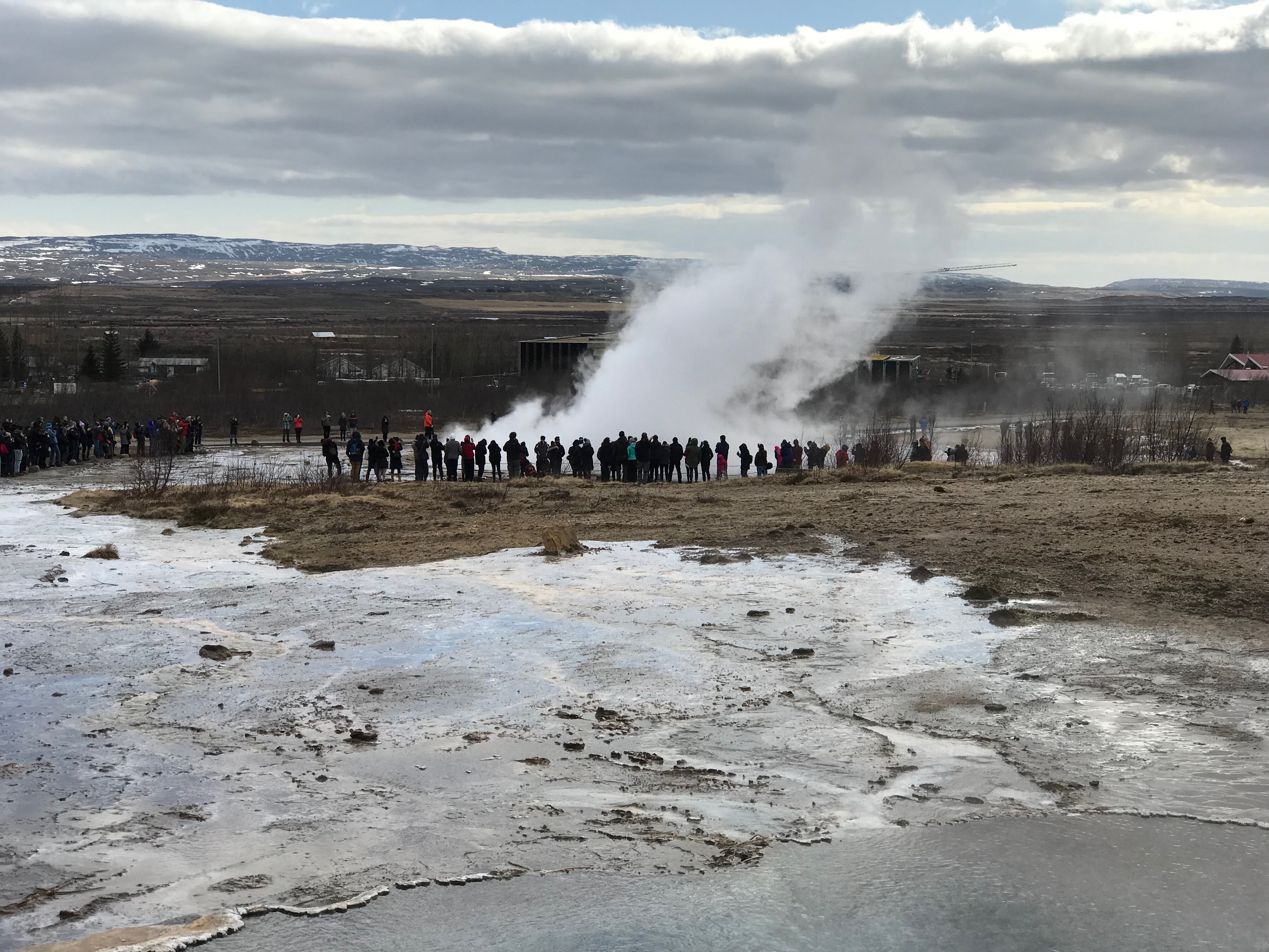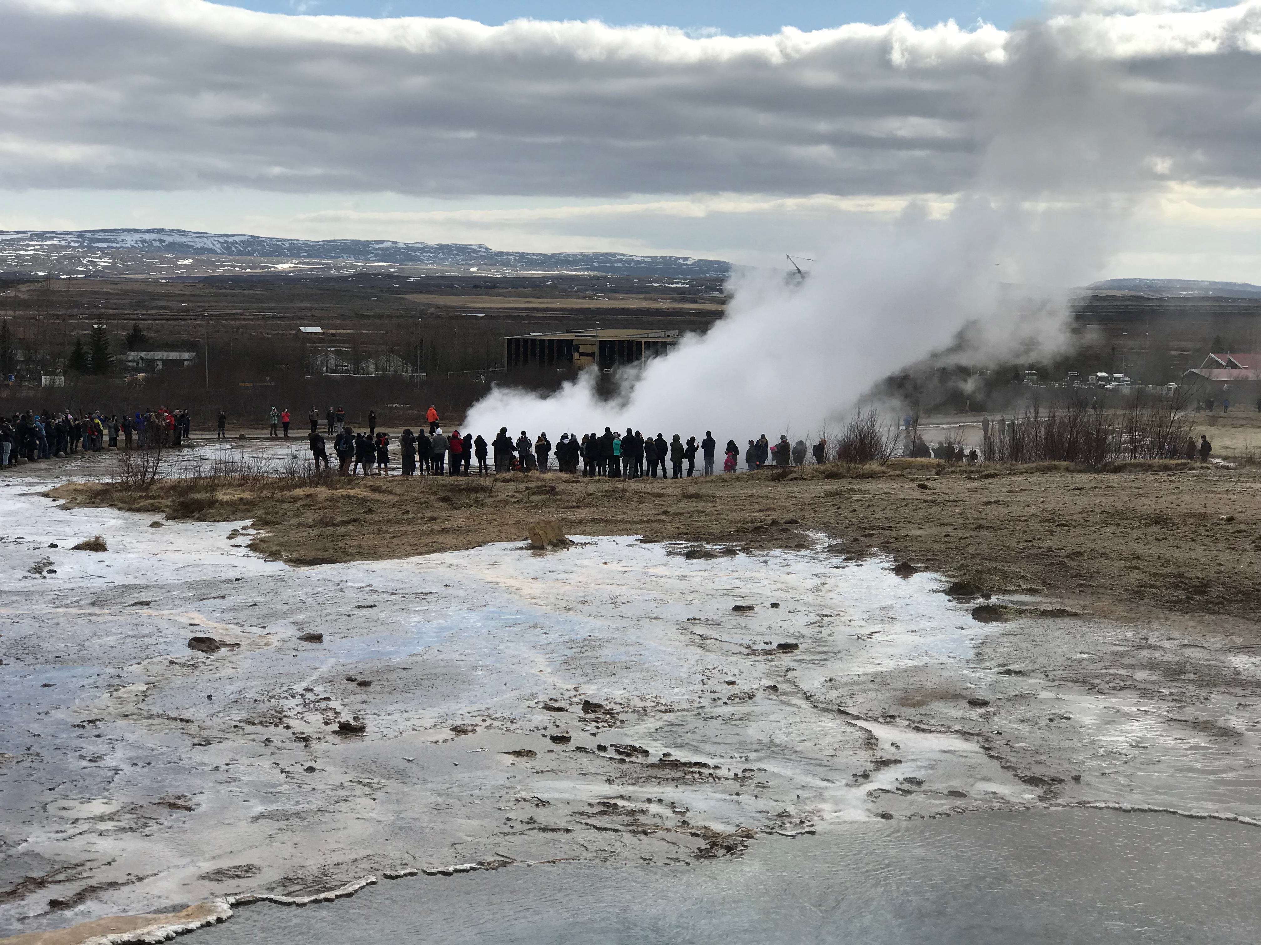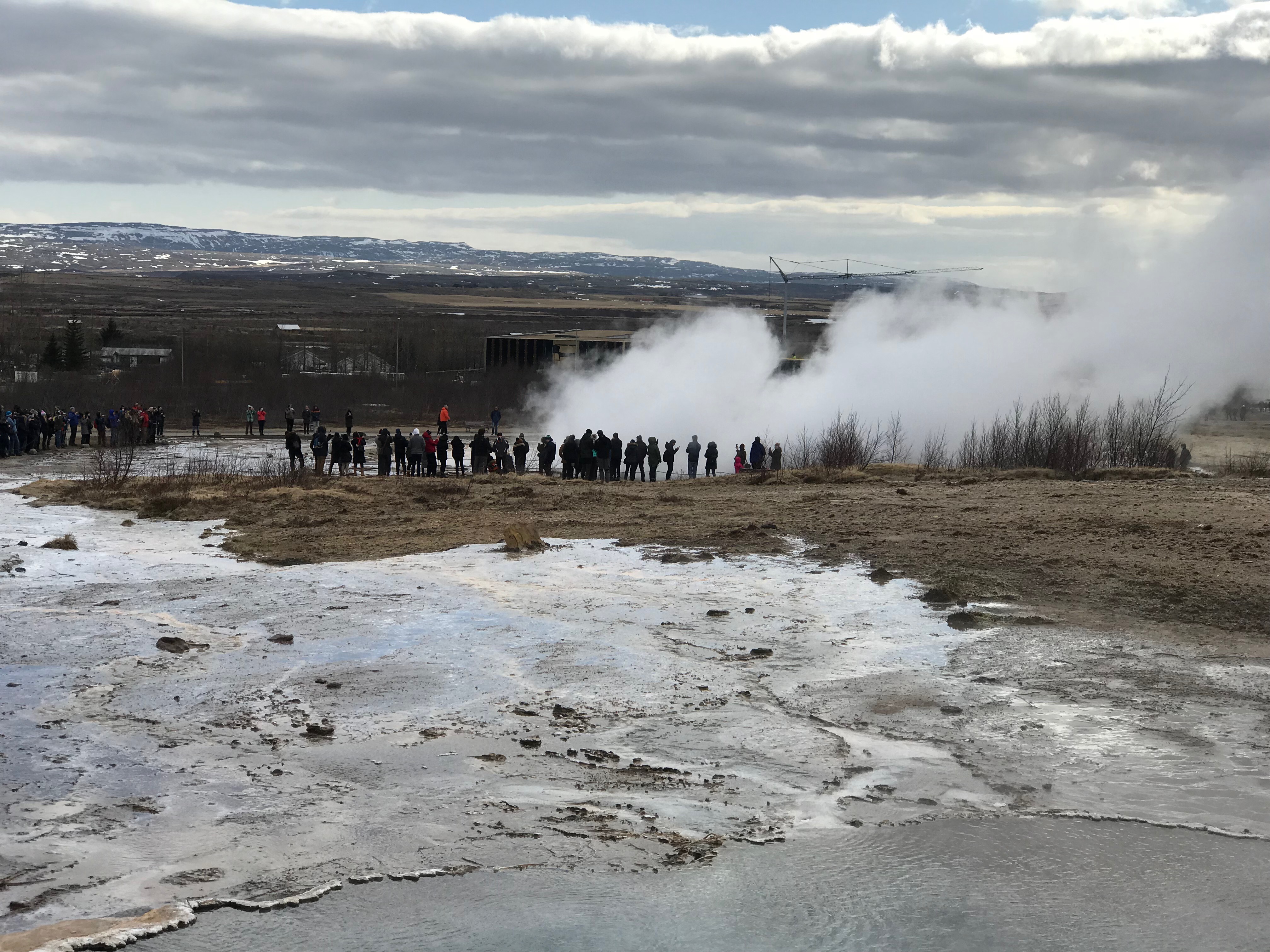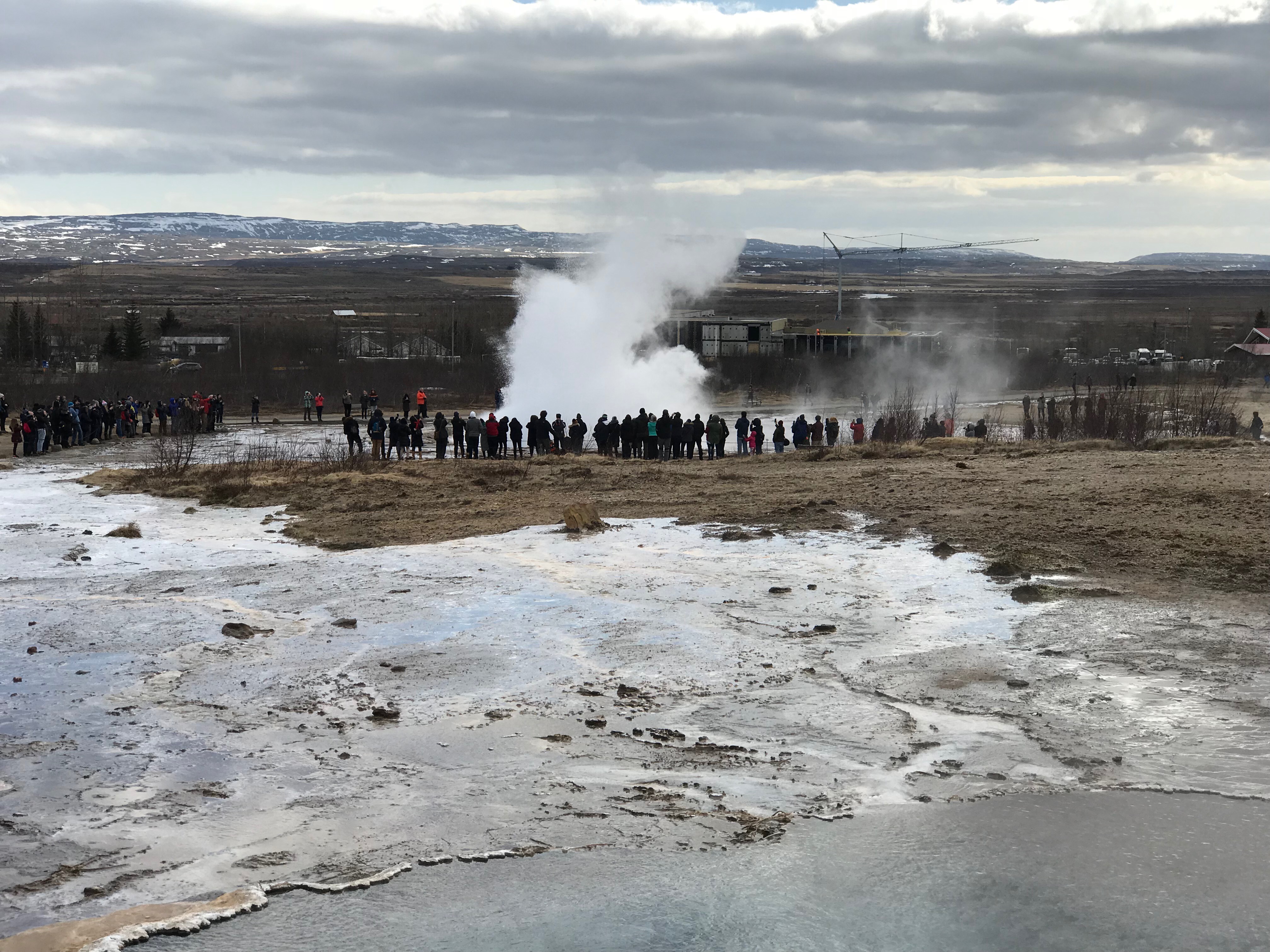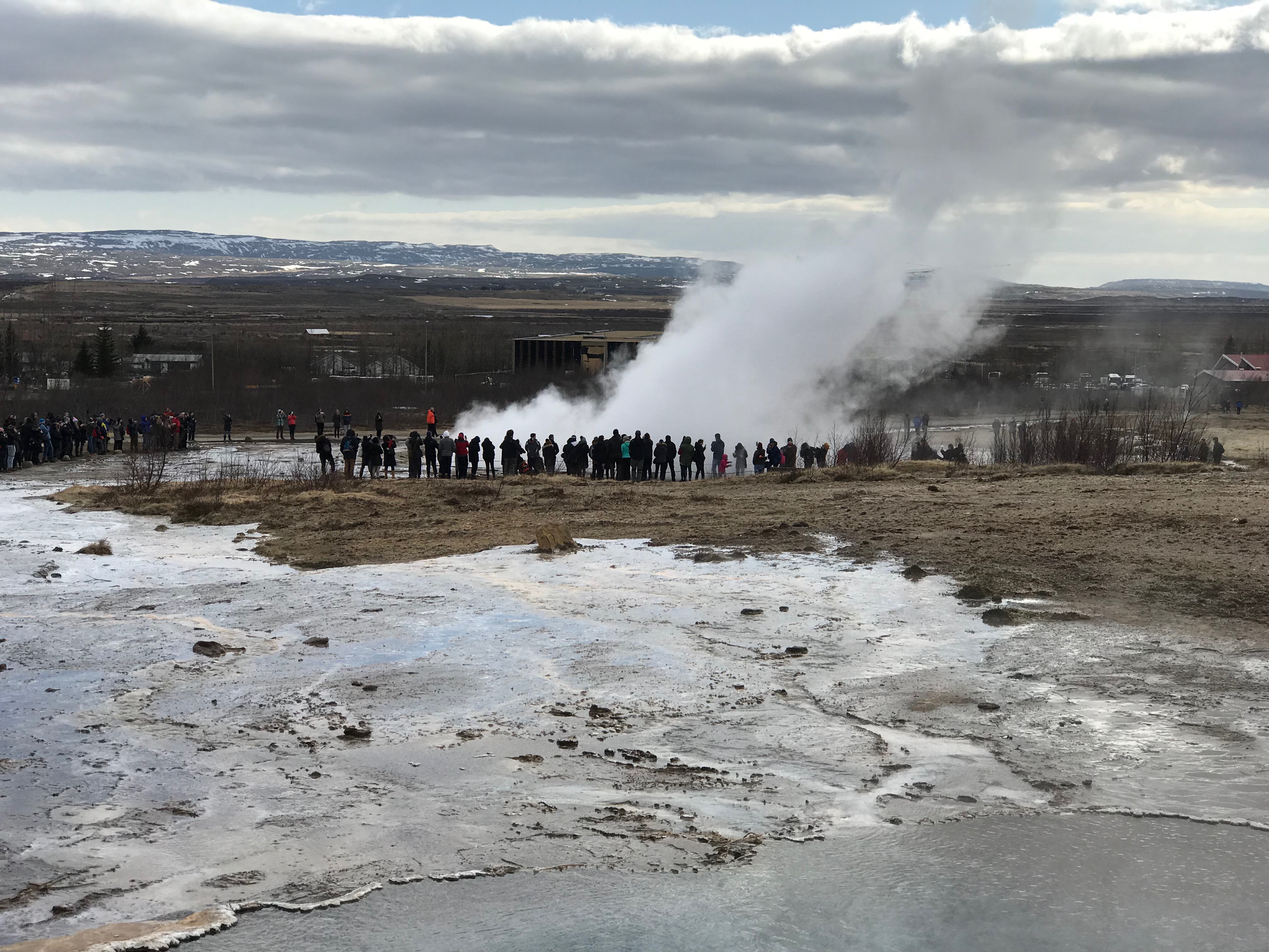 We were told by our trusty guide that this is pronounced “Gay-zer”, not “Guy-zer” or “Geezer”. The English word “geyser” comes from the old Norse word “geysir” which mean “to gush.” Olaf also told us they called the mist “smoke” instead of “steam”. As Icelanders have an in-depth written history, it is no surprise that the Great Geysir here is the first one ever described in print, first mention in writing in the year 1294.