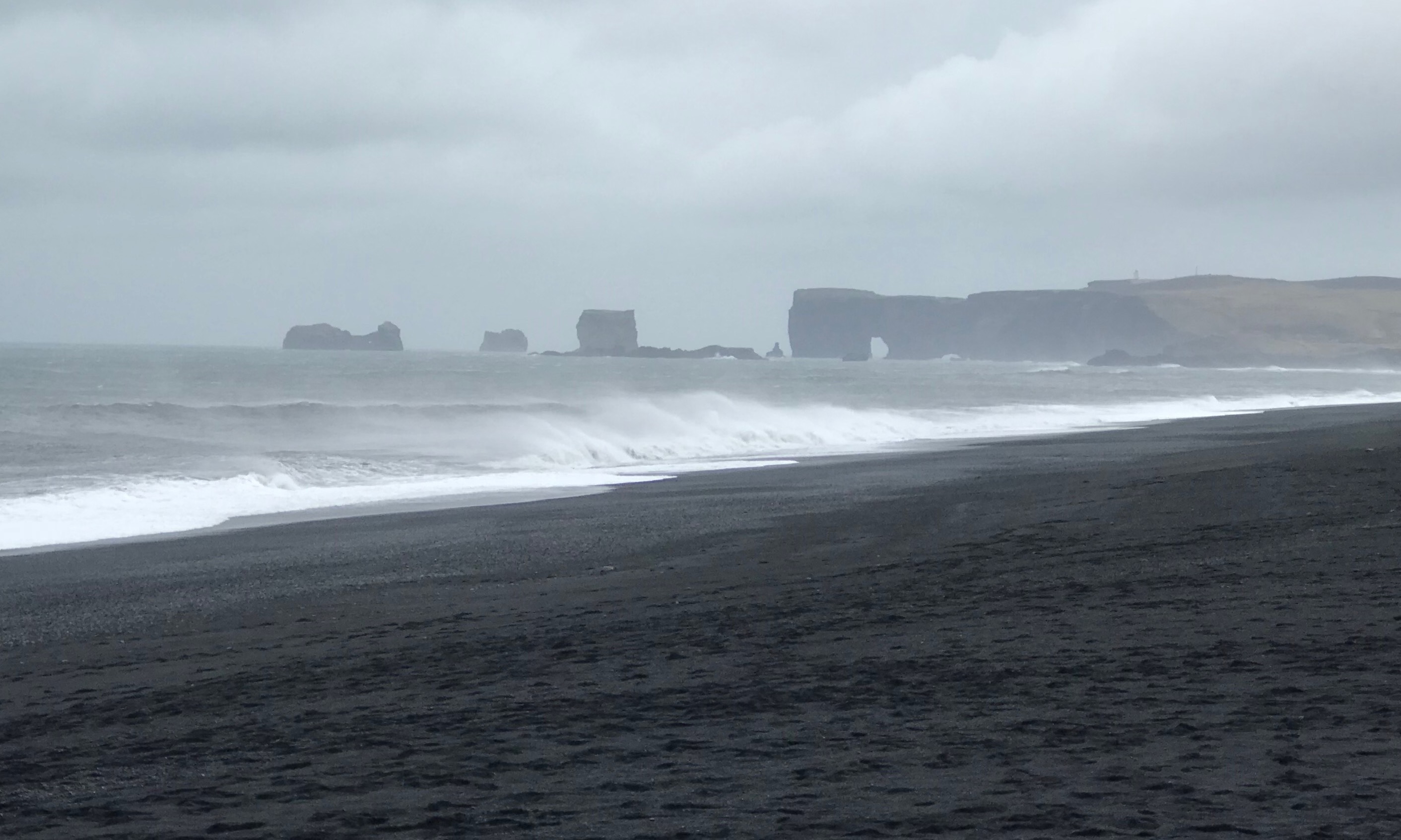 Through the surf and wind we could see Dyrhólaey, the arch.