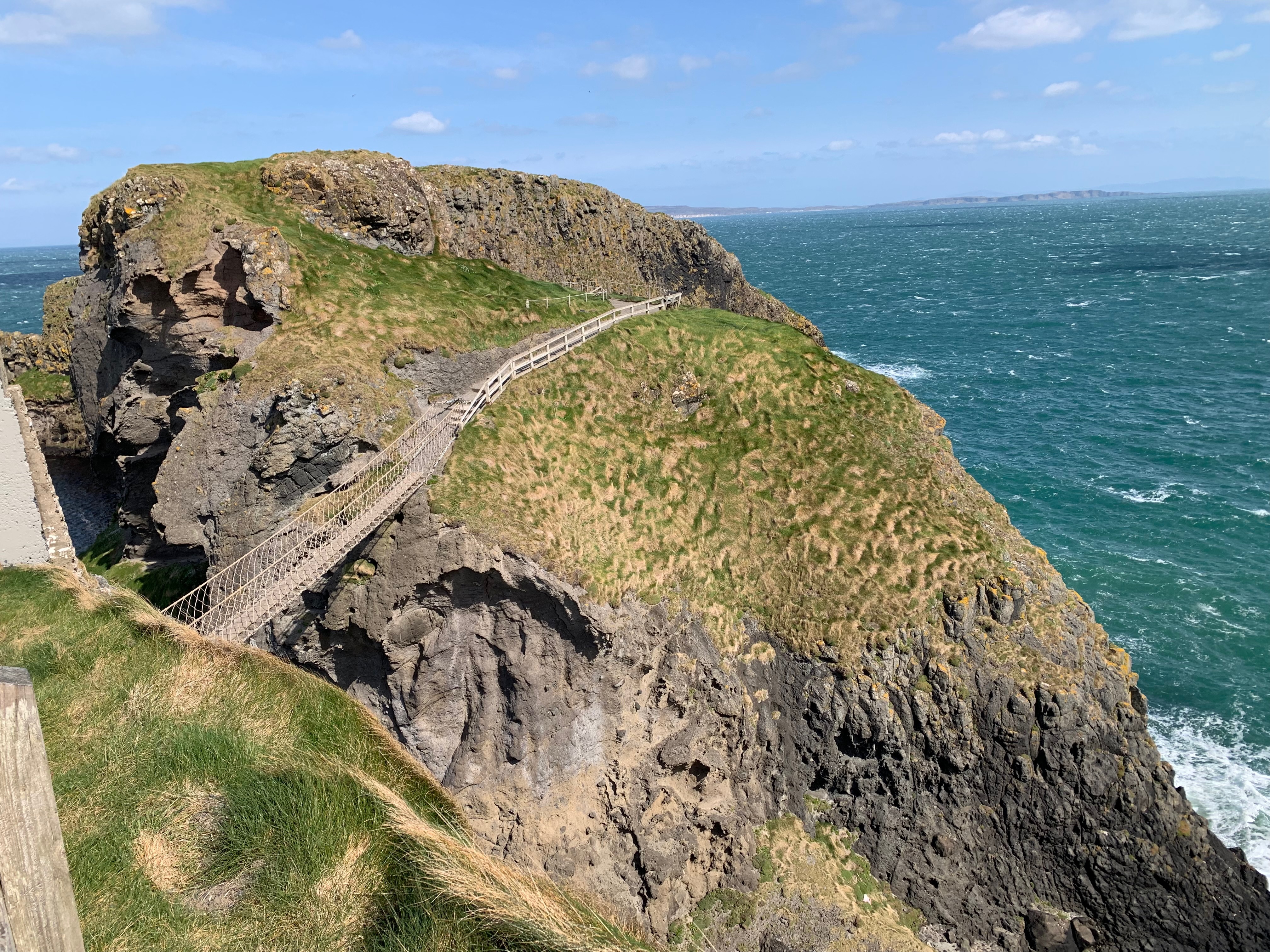 We were originally schedule to walk the Carrick-A-Rede rope bridge here but winds at 40 mph with gusts to 60 forced them to close the bridge. The bridge was originally used by fisherman who wanted to get their catch in quicker than it would take to sail to the closest port.