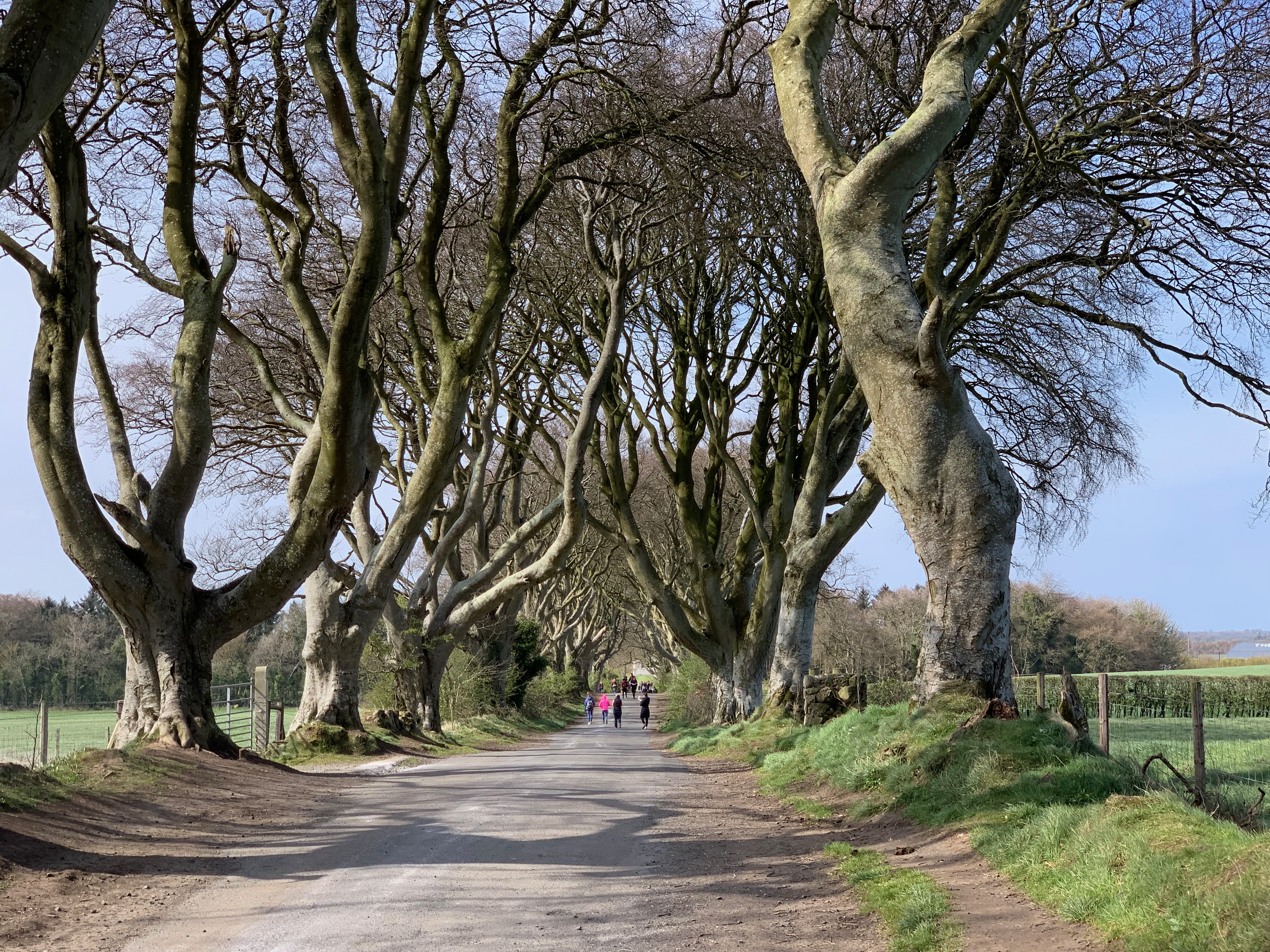 We visited in April 2019 and the trees that make up the Dark Hedges had not yet sprouted leaves. The hedges were originally planted by the Stuart family in the 1700s to line the entrance to their estate.