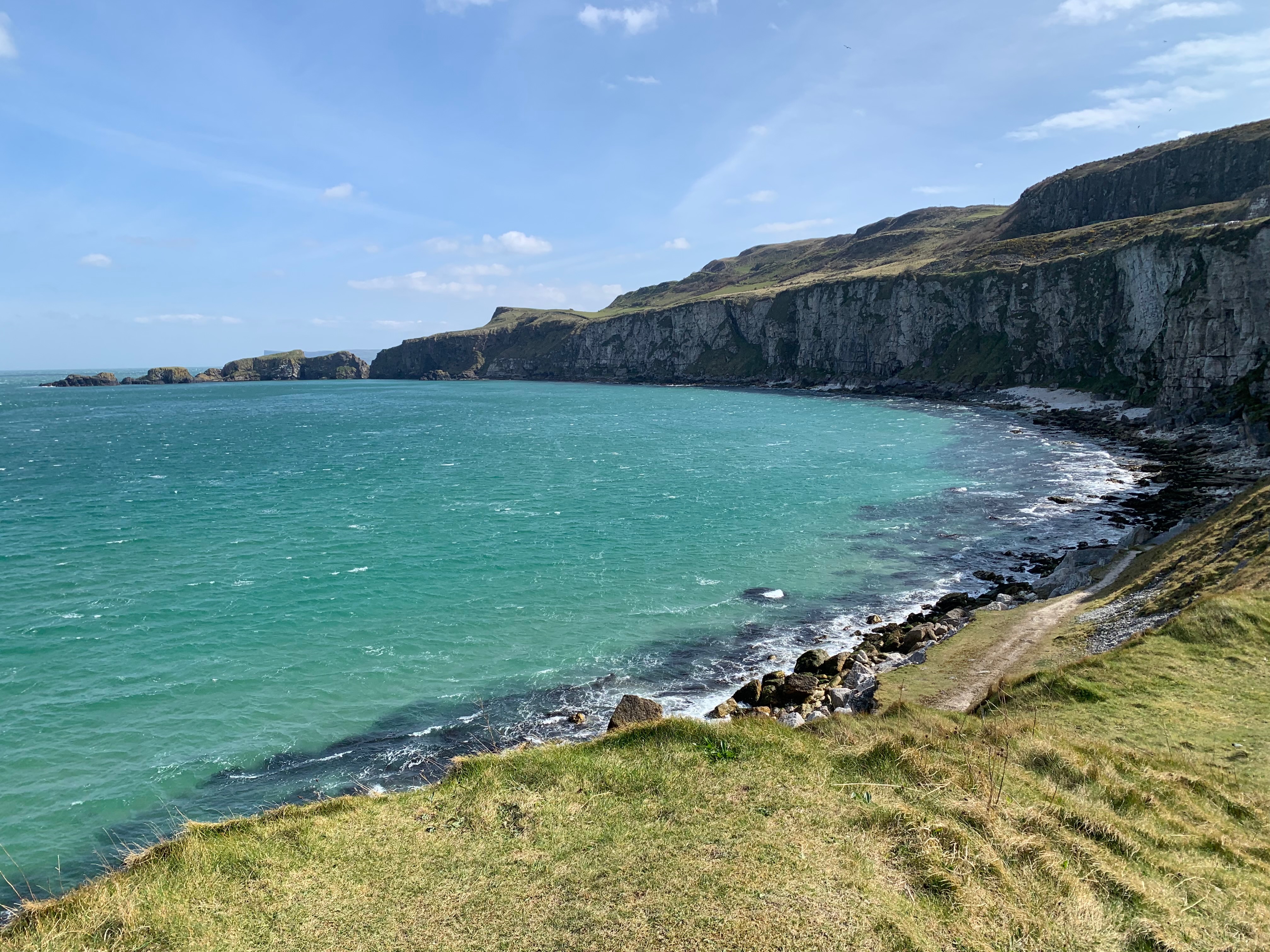 The views from the amphitheater at Larrybane back towards where the rope bridge spans to Carrick Island are spectacular. We were told that dolphins could frequently be seen jumping in the water, but it was no doubt too cold on the day we visited.