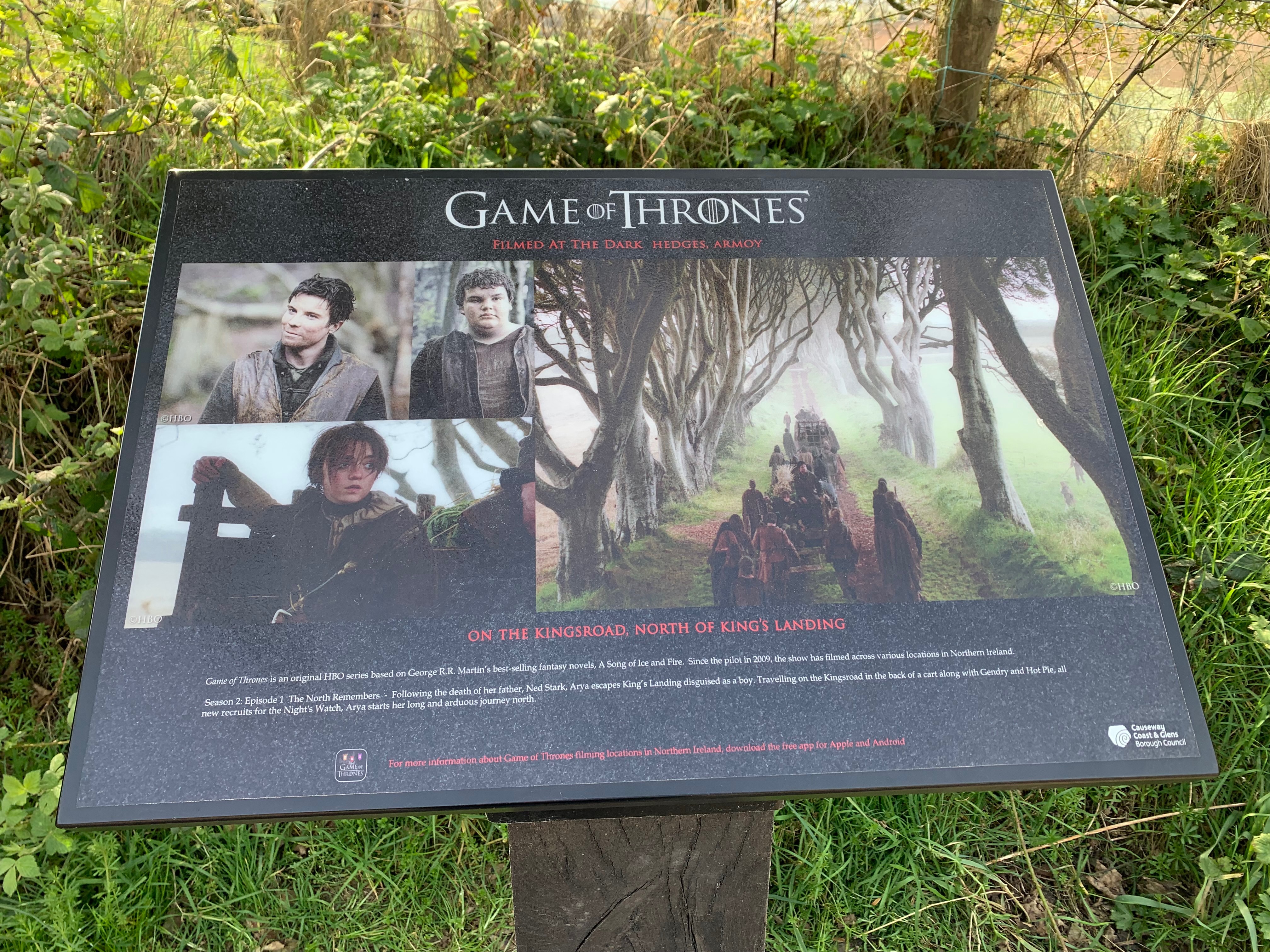 At all most of these locations there are Game of Thrones filming signs, like the one below along the Dark Hedges.