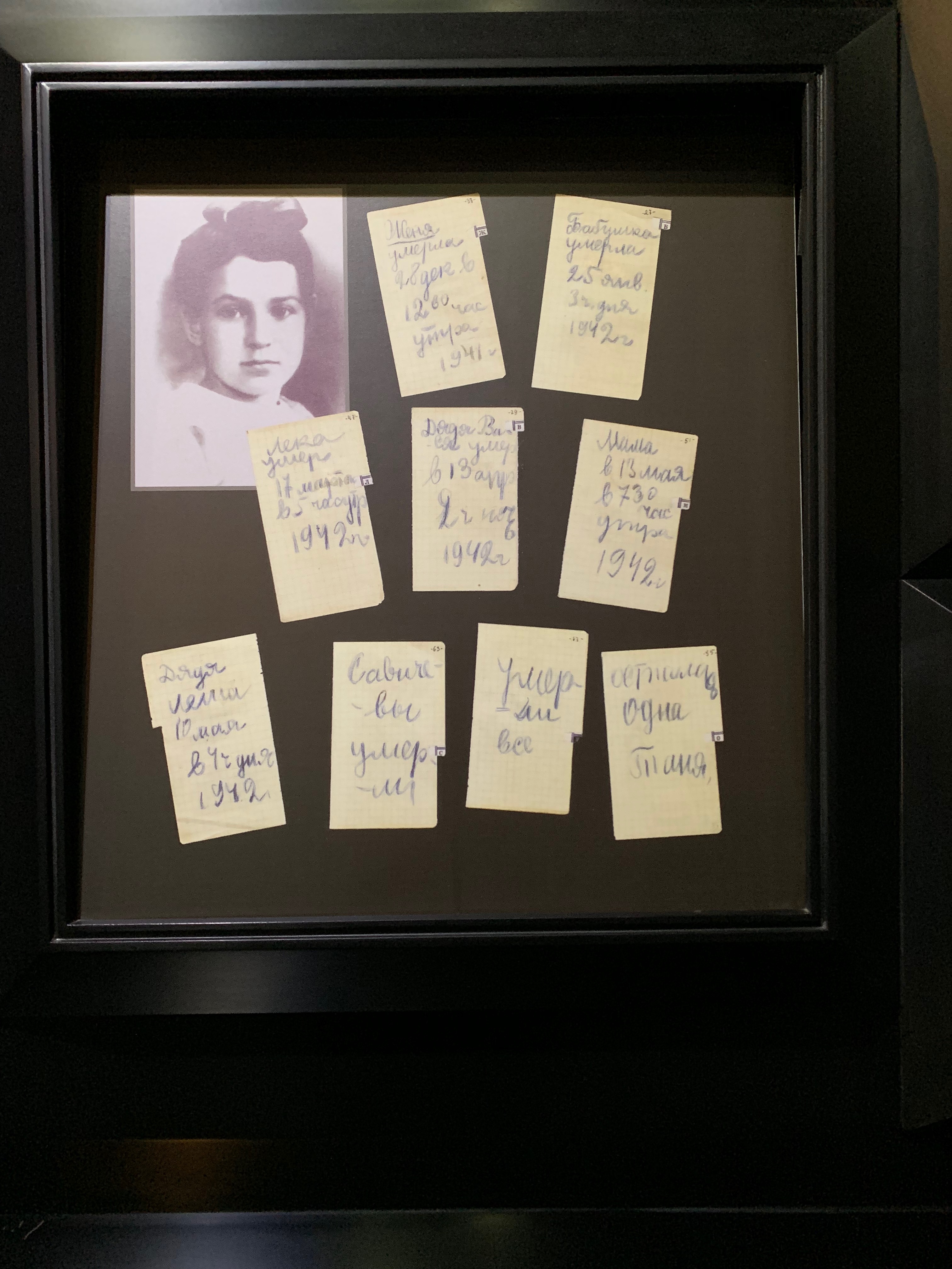 One item in particular are replicas of the notes from a young lady named Tanya Savicheva, a teenager who wrote a diary of sentences tracking the deaths of her family during the siege. The last note says “Only Tanya is left”. The originals are kept at the Museum of Leningrad History.