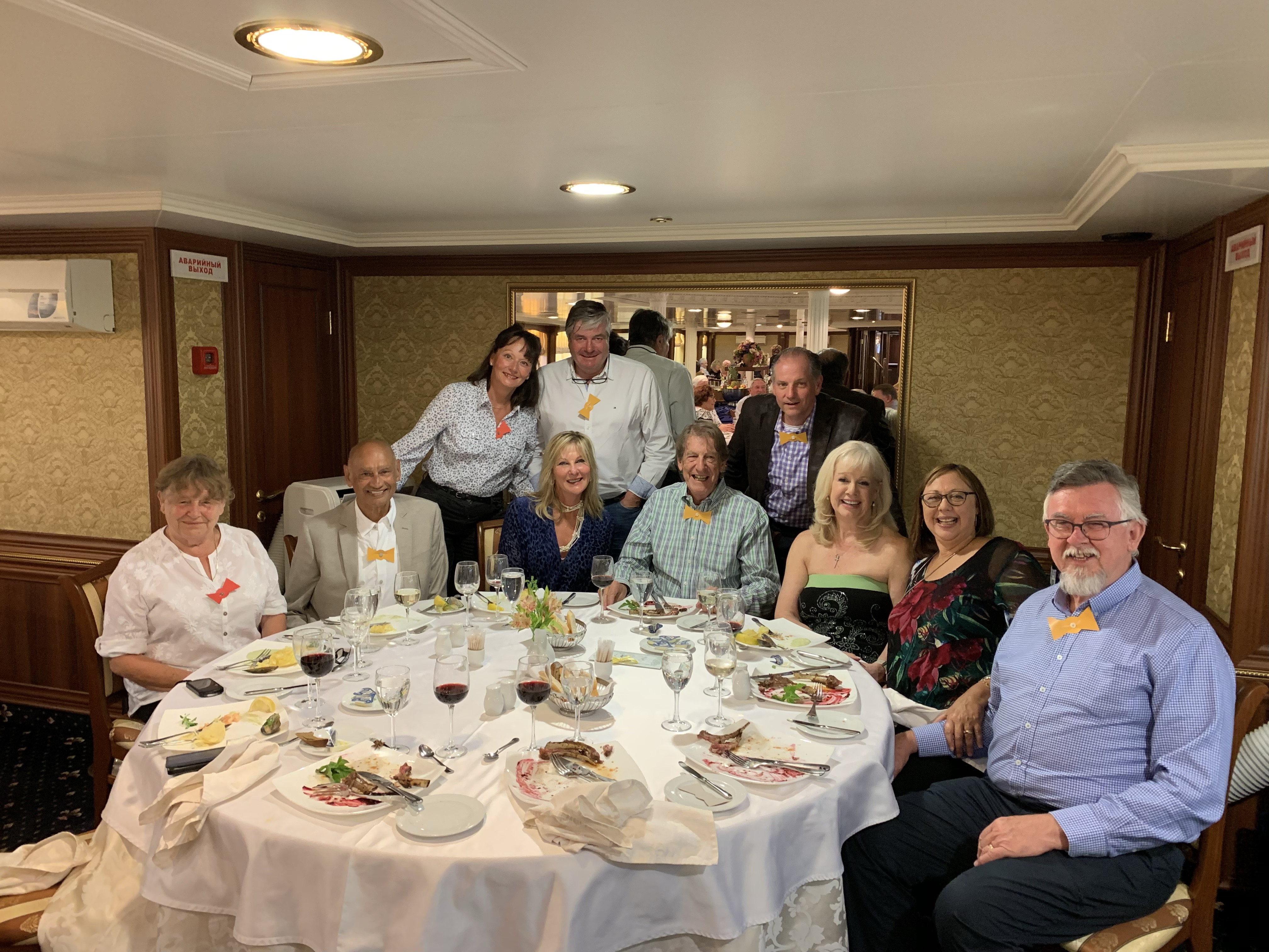 That evening, back on the boat, was the farewell dinner, and we got a picture of the entire group we had spent the cruise with aboard the Volga Dream