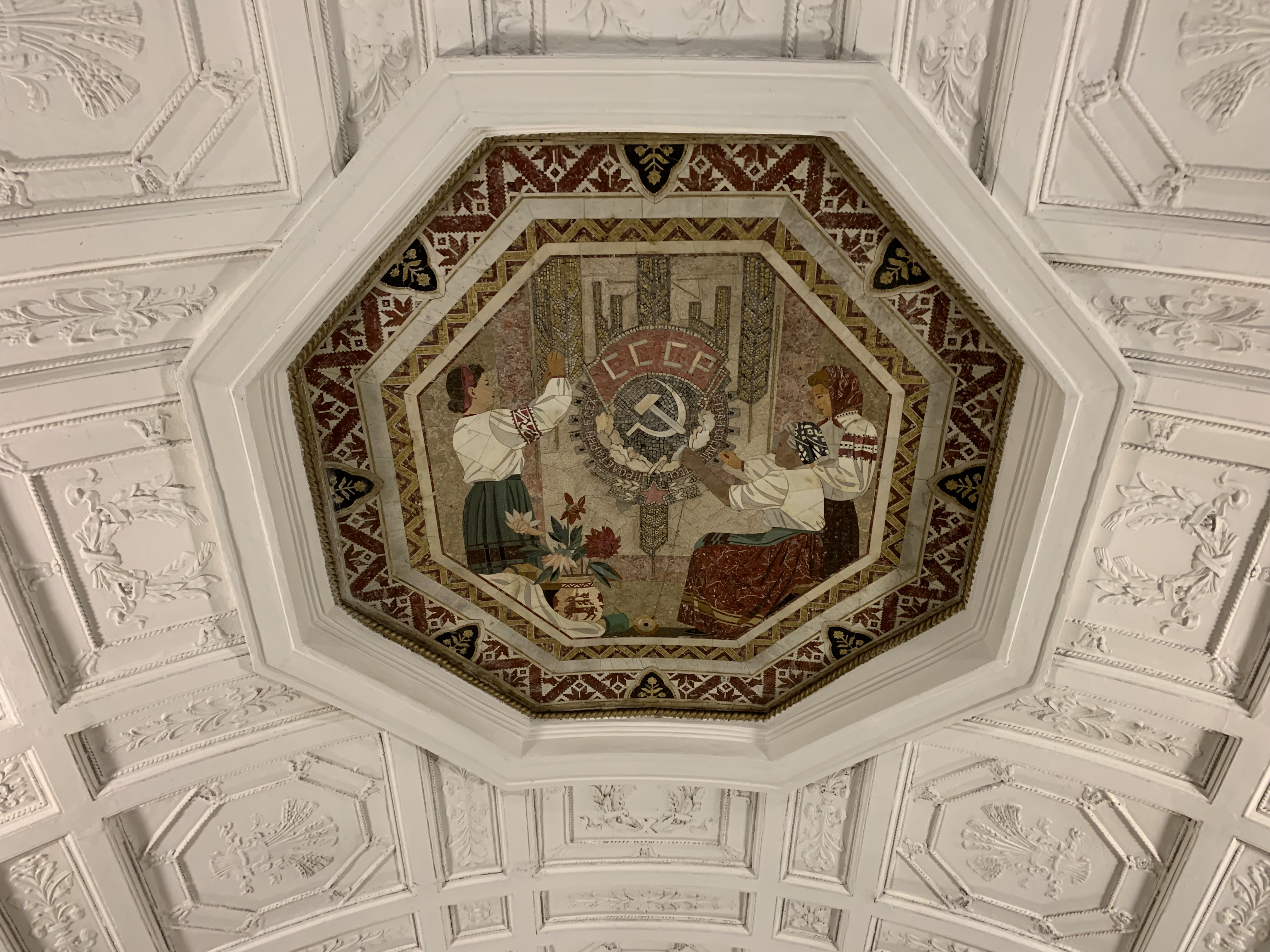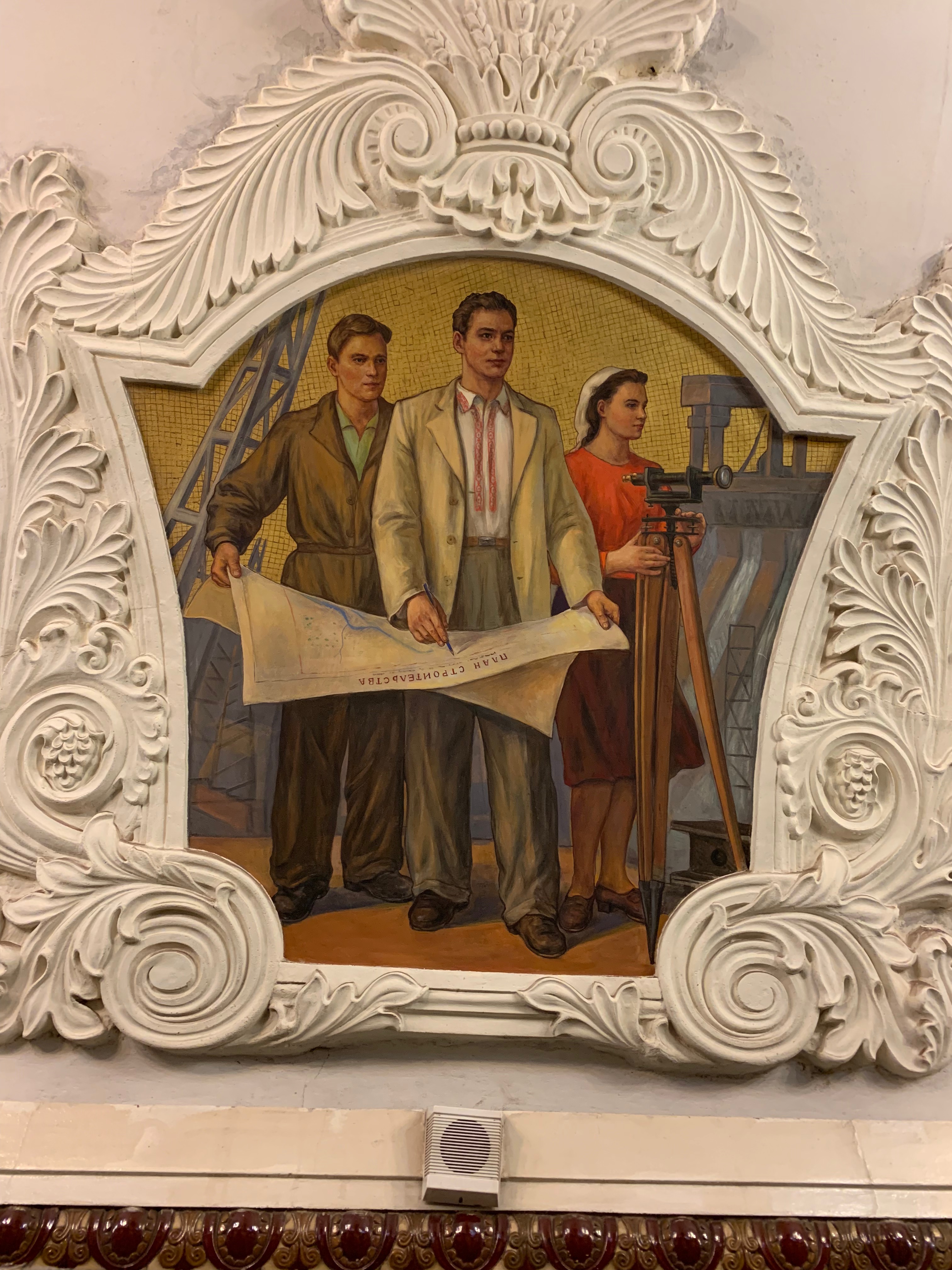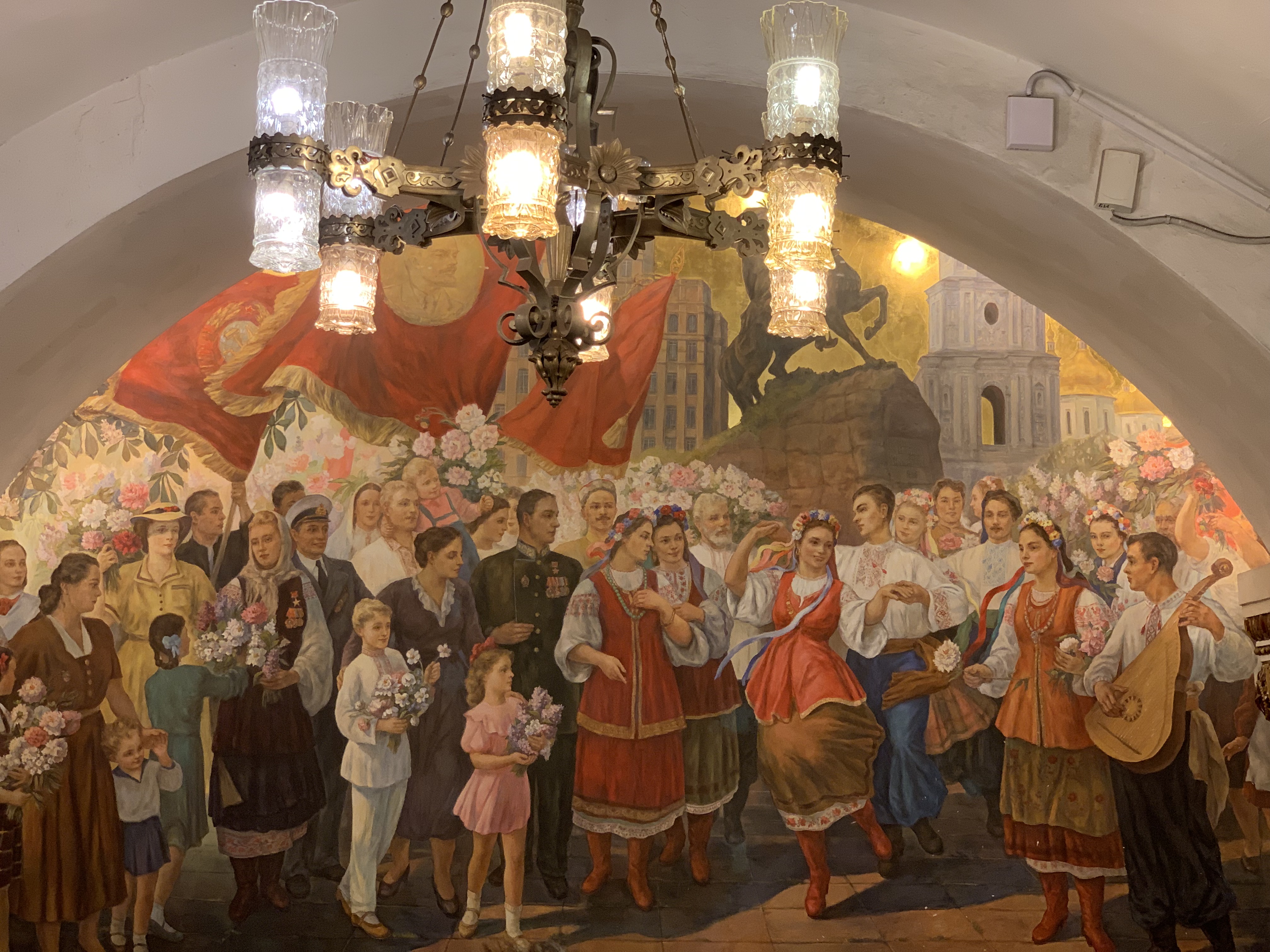 There are paintings in this station that are devoted to Soviet and Ukraine friendship. There was a large one at the end of one of the tunnels.