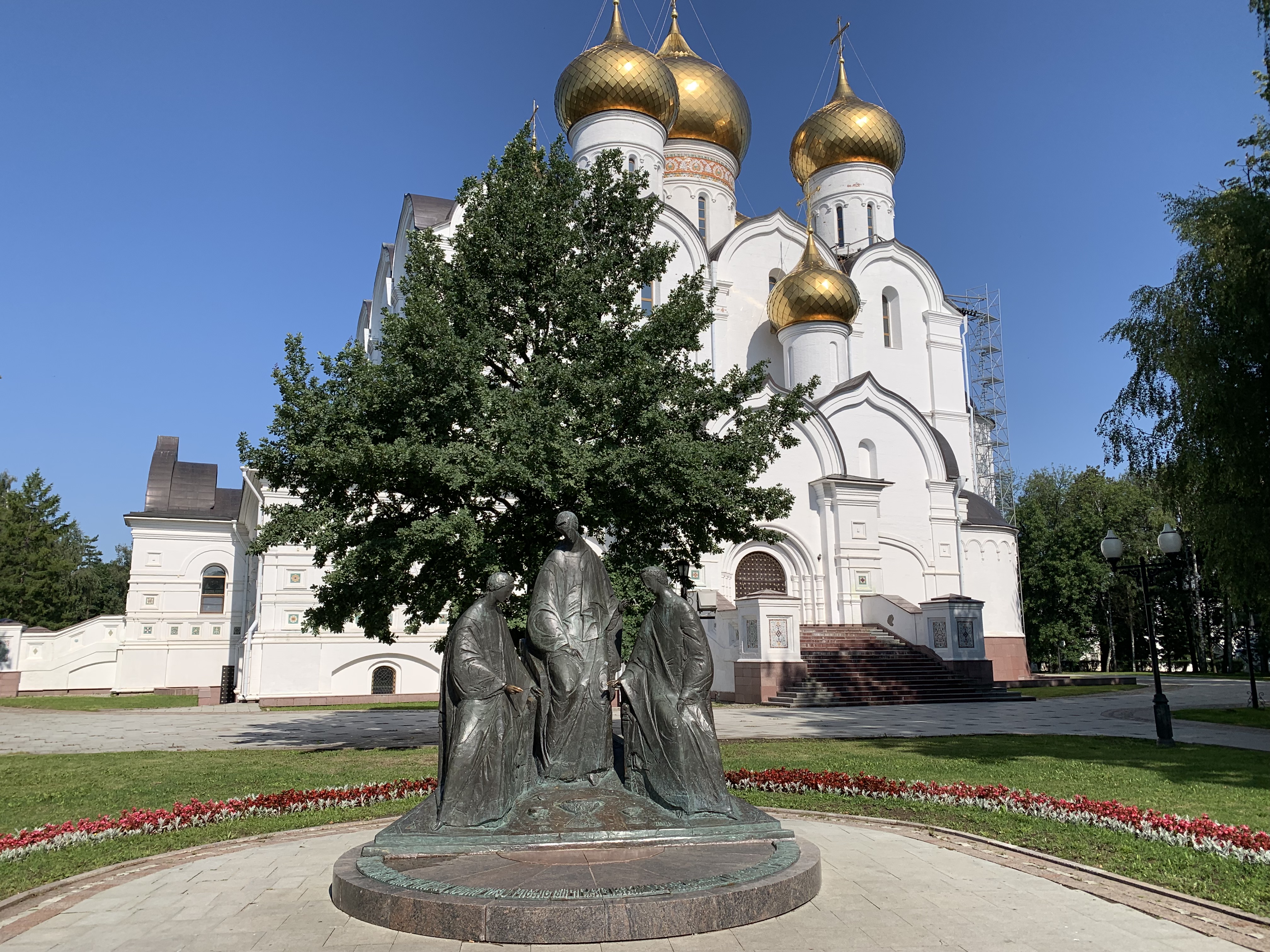 The Church had been destroyed and rebuilt four times, and the current version was very recent. In front of the church is a sculpture named “Trinity” by Nikolai Alexandrovich Mukhin.