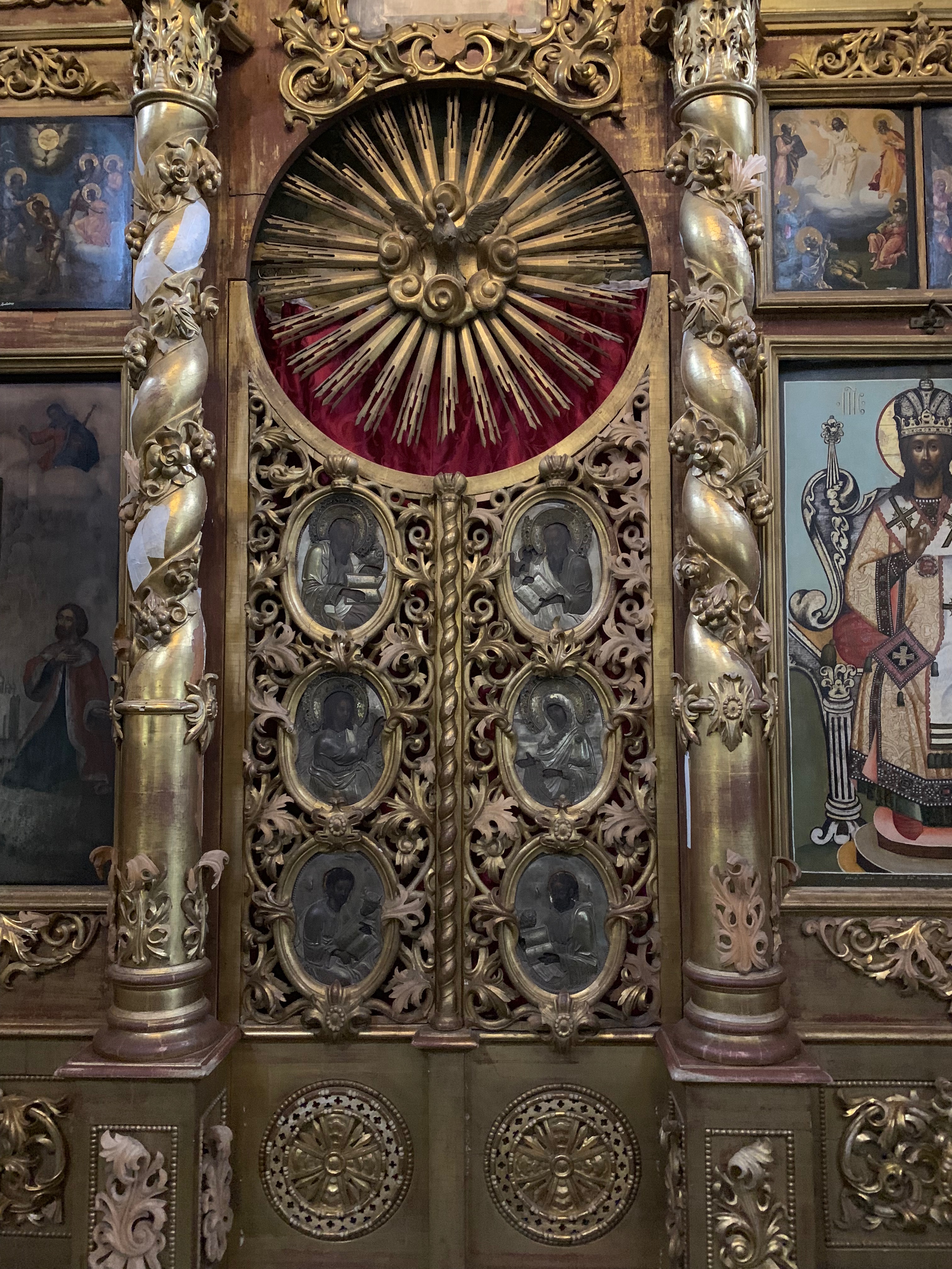 Inside the chapel, the icons were a stark contrast to the frescoes just out the doors. Our guide told us that Mary is always on the left, Jesus to the right. The icon to the right of Jesus is the icon of the church.