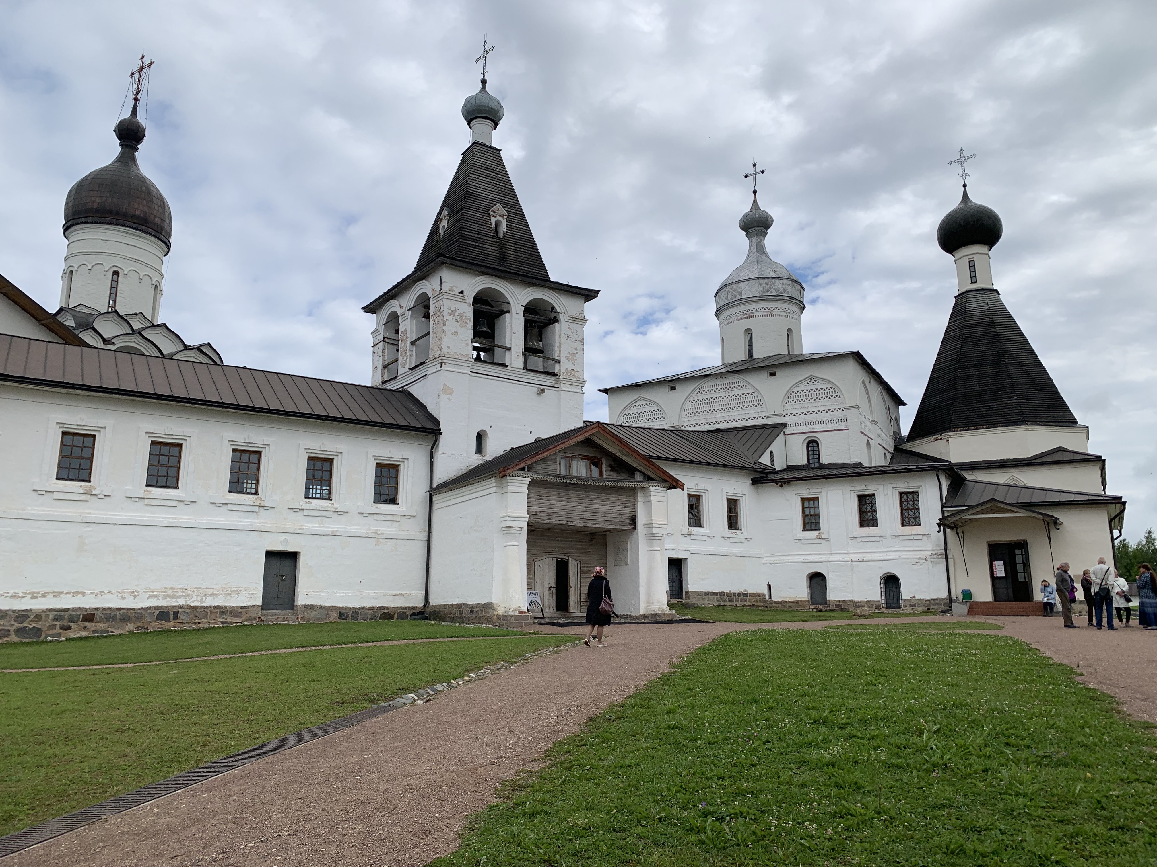 The ship docked in Goritsy, and our group took a longer bus ride (30 minutes) through the Vologa Oblast to the Ferapontov Monastery. As with many of the other places visited on this voyage, the Monastery is a UNESCO World Heritage site. There are six surviving buildings in the Monastery, which is surrounded by a stone fence built in the 19th century.