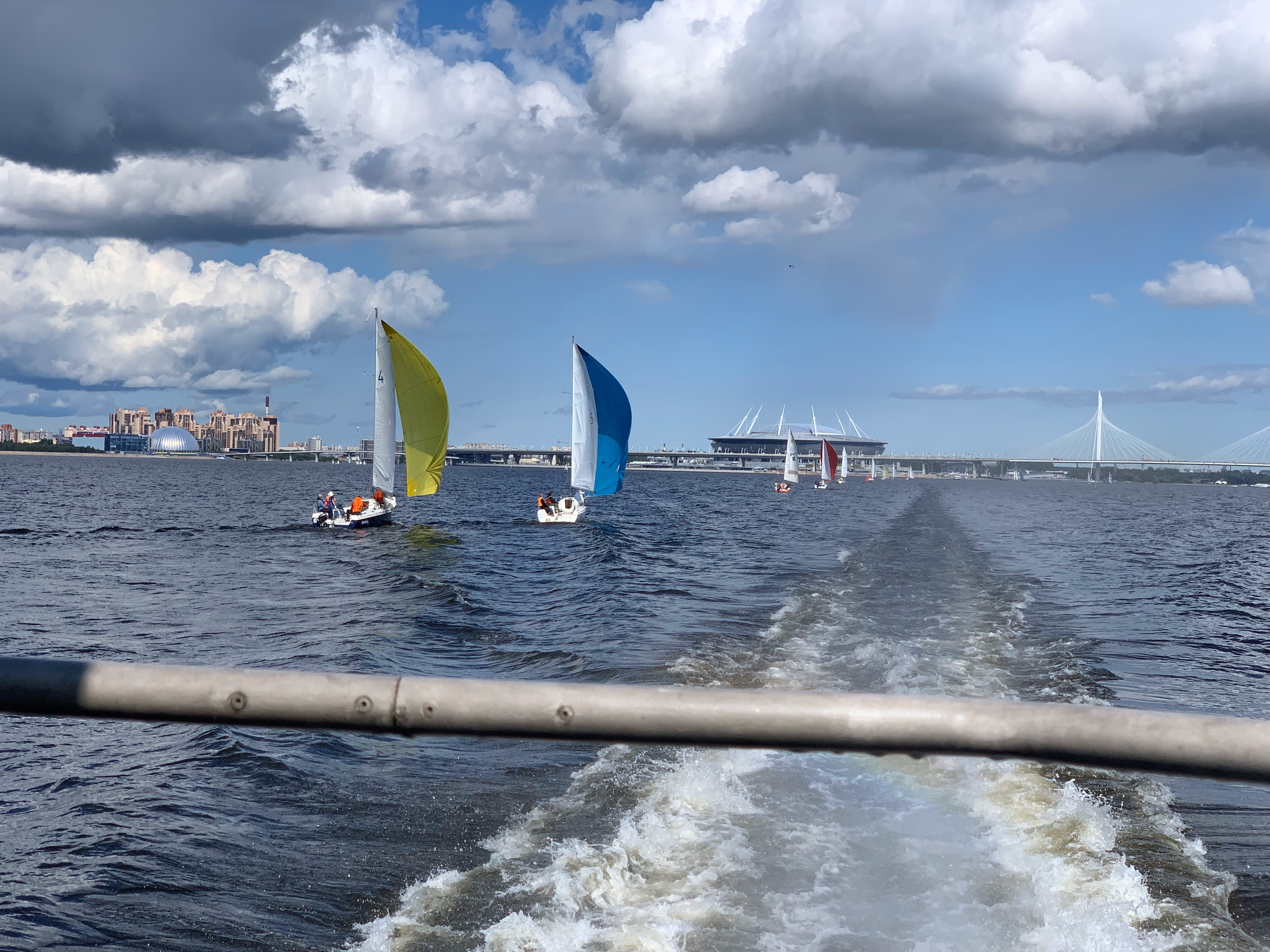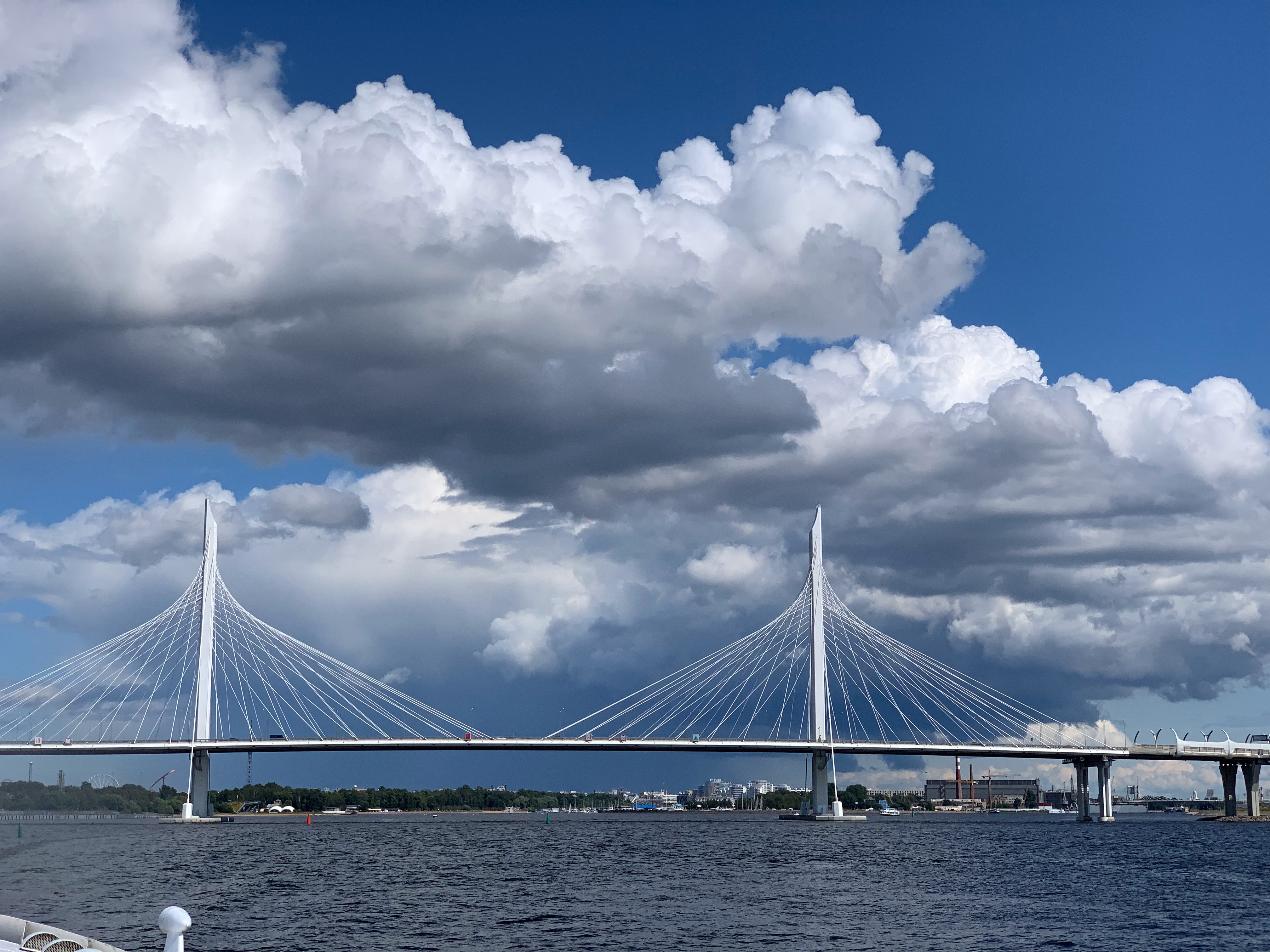 Once out into the bay, the hydrofoil passed lots of buildings, including the local stadium and the Lakhta Center.