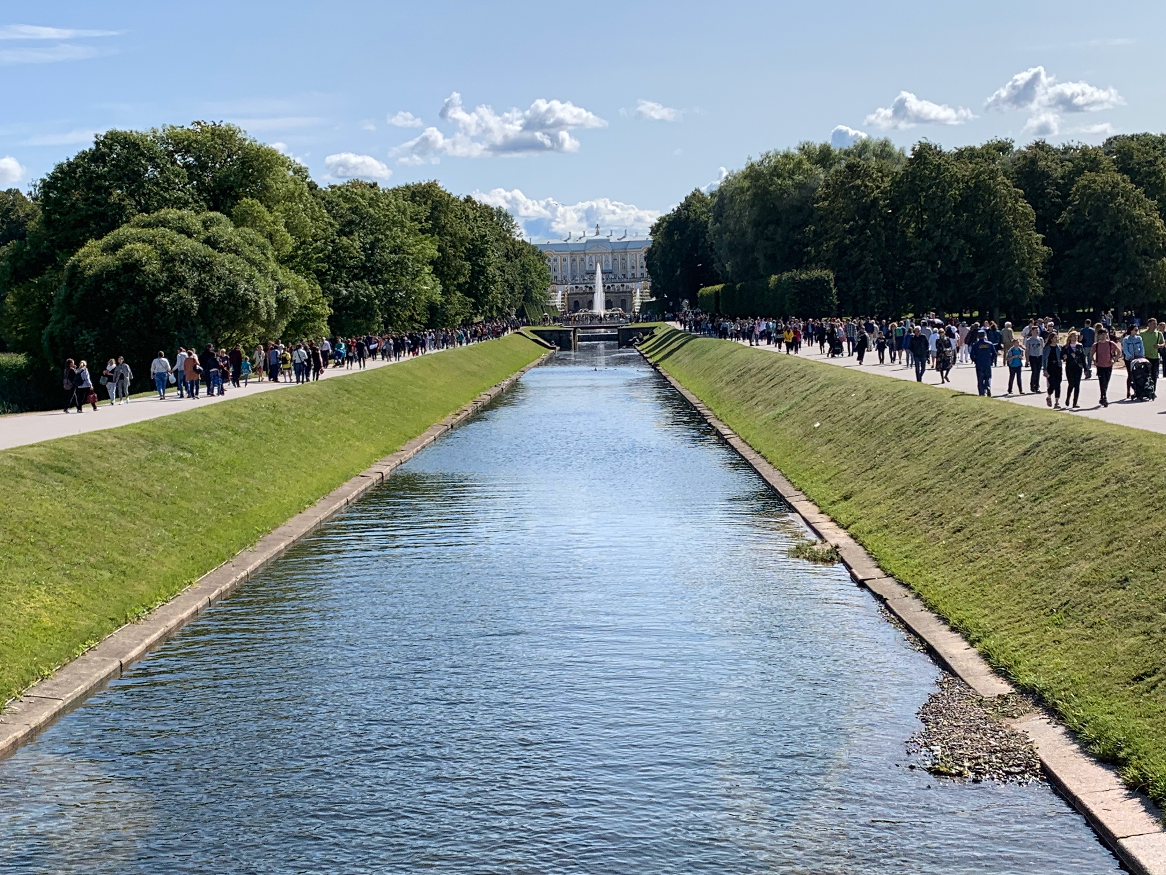 The photo below looks out from Peterhof Palace overlooking the fountains down the sea channel towards the pier.