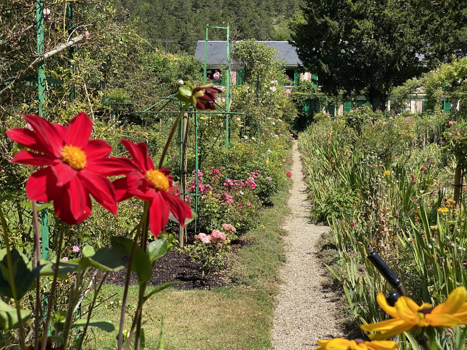 We’d visited the Musée de l’Orangerie on our last trip to Paris (April 2019), and sat in the rooms with the massive Water Lillies paintings of Monet’s. Our first stop on our driving trip outside of Paris in July 2022, heading to our first evening in Rouen, was to see Monet at Giverny. It was about an hour drive out of Paris, off the highway a bit further than we thought. But we got there early enough (about noon) to beat most of the crowds – when we finished and were heading back to our rental car around 3pm to continue on, the line for tickets was long in the heat of the afternoon.