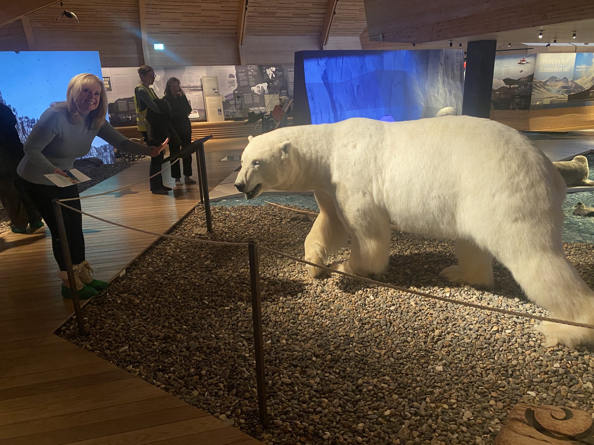 At the Svalbard Museum, Audrey got an up close encounter with a polar bear – as close as she wanted to be.