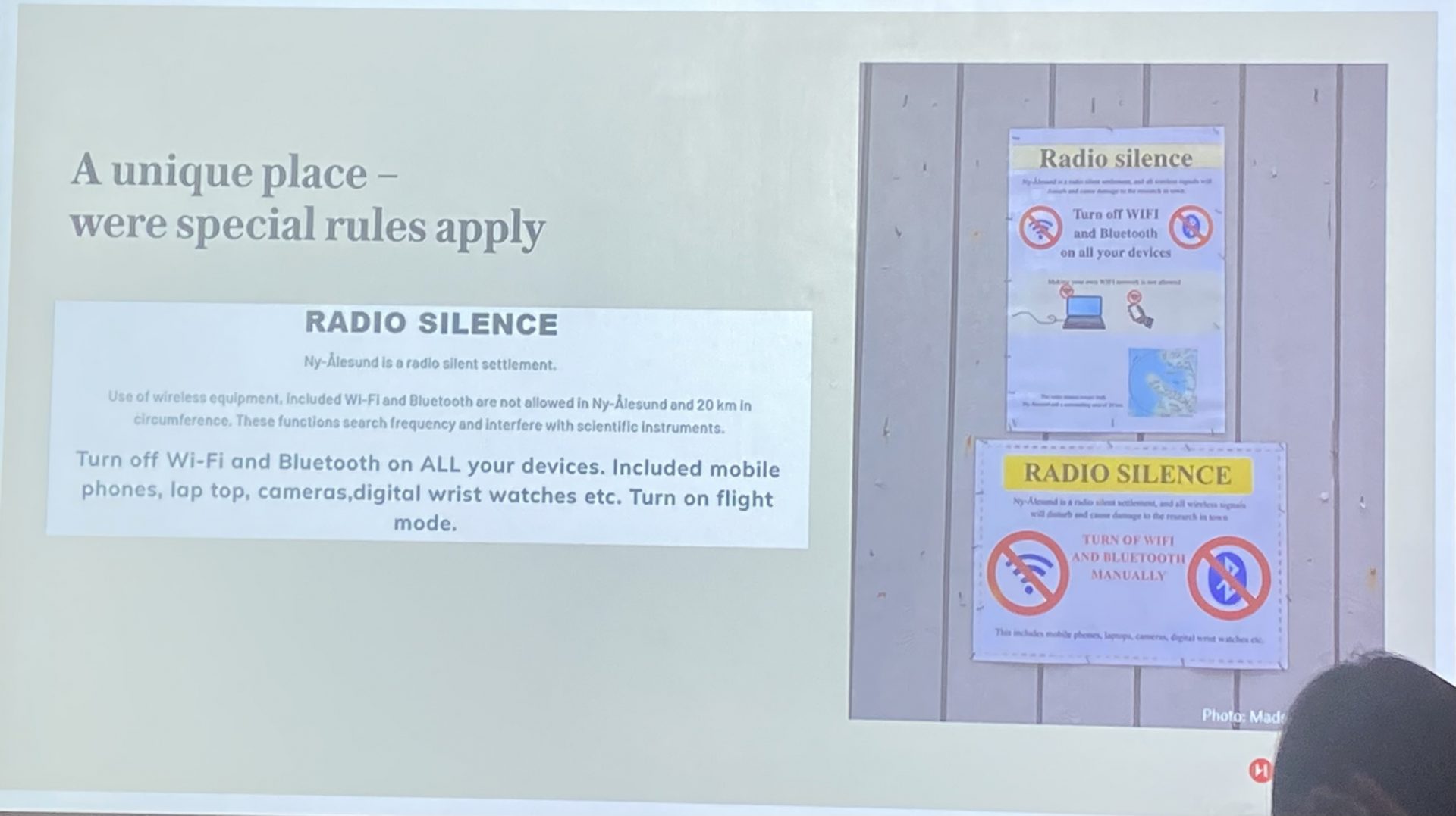 We had been told that the ship Wi-Fi (and all devices with WiFi and Bluetooth) would be turned off as we approach the town. This because “these functions search frequency and interfere with scientific instruments”. And, promptly about 30 minutes out, the WiFi shutdown and the announcement was made to the entire ship.