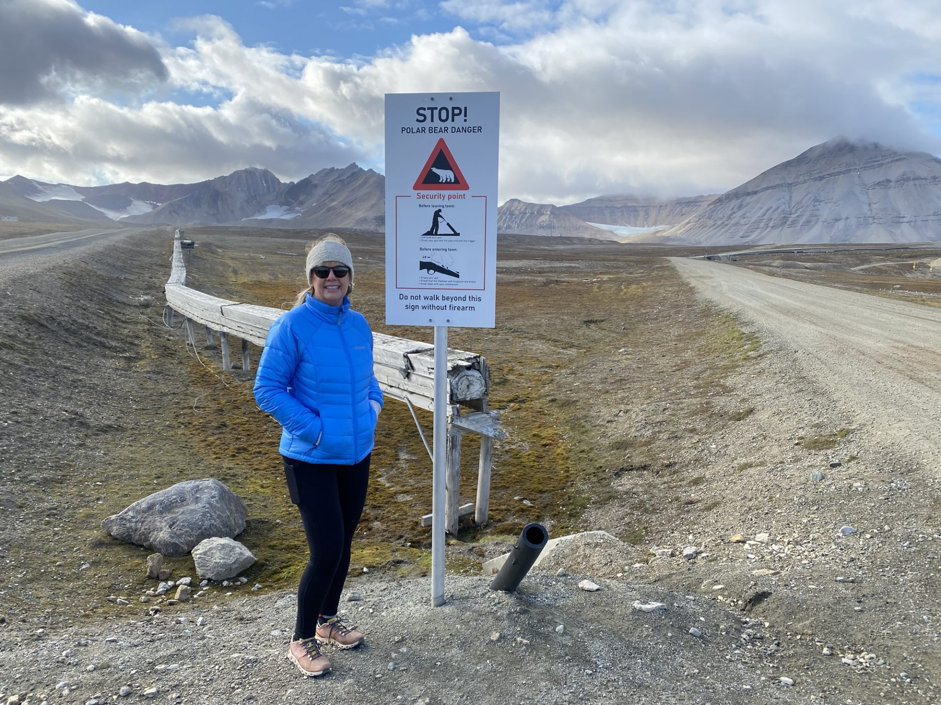 At the Svalbard Museum, Audrey got an up close encounter with a polar bear – as close as she wanted to be.